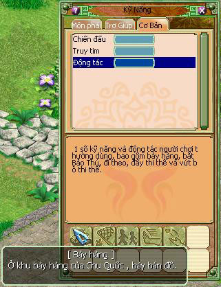 - Tiếp theo mở bảng kỹ năng, chọn ô “Cơ Bản”, chọn tiếp dòng thứ 3, sau đó kéo biểu tượng “Bày Hàng” vào thanh phím tắt rồi bấm vào đó để mở cửa hàng.
