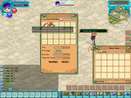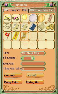 Thu mua vật phẩm từ cửa hàng:Nhấp chuột trái vào gian hàng của người chơi khác là có thể tham quan cửa hàng đó. Chọn vào món hàng muốn xem là có thể biết được giá cả và số lượng của món hàng, sau đó chỉ việc bấm vào nút “Xác Nhận” là có thể mua được món hàng mà bạn thích.