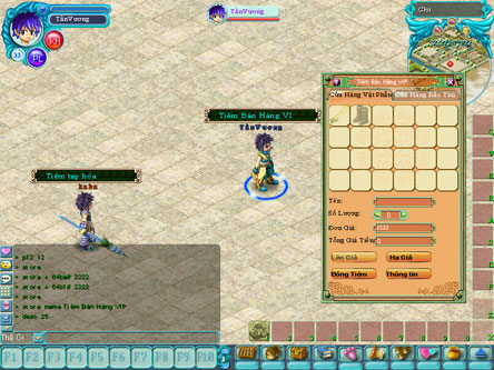 Mở cửa hàng riêng:Trước khi muốn mở cửa hàng riêng người chơi phải đến Chu Quốc, tìm khu vực chợ ( bấm Alt + D sẽ thấy khu vực chợ). Xin lưu ý là chỉ có thể bày bán những vật phẩm có trên người mà thôi. - Đầu tiên bạn hãy chọn 1 vị trí thích hợp trong khu vực buôn bán.