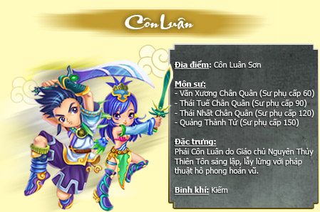 Côn Luân Mấy trăm năm giang hồ lưu truyền Đông có đảo Bồng Lai, Tây có Côn Luân trên đỉnh núi tại Trường thành phía Tây, đều là nơi thiên địa hòa hợp, tiên cảnh nơi nhân gian. Từ thời Khương Tử Nha phò Châu diệt Trụ, núi Côn Luân đã thu hút biết bao cao nhân đạo sĩ đến tu luyện. Cho dù vì trường sinh bất lão, thuật hô phong hoán vũ hay phép gọi Thần Long thì người luyện tiên thuật đều phải có tư chất hơn người cũng như tâm niệm kiên quyết nếu muốn thành chánh quả.