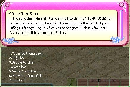 “Cấm Chat”: Cấm chat 1 người chơi khác trong 15 phút, chỉ có 3 lần cấm chat những người chơi khác trong 1 ngày.