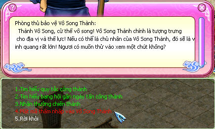“Mở/Đóng Cổng Thành”: Cho phép những người chơi khác có thể ra hoặc vào Vô Song Thành.