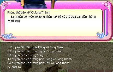 Lưu ý:+ Ở mục 3.Chuyển đến Vô Song Cung thì khi chọn mục này, các bằng hữu sẽ được di chuyển đến phía chính diện lối vào Vô Song Cung.