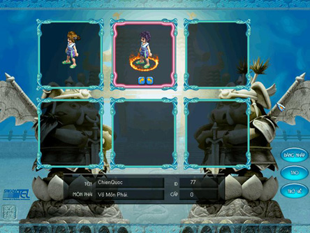 Cuối cùng chọn nhân vật vừa tạo và nhấn nút “Đăng Nhập” để vào game. Ngoài ra, tại đây còn có một số thông tin về nhân vật như : Tên nhân vật, Môn Phái, Đẳng Cấp. Số ID (mỗi nhân vật sẽ có một số ID riêng, số này chính là số chứng minh cho nhân vật thân yêu của bạn đấy, hãy ghi nhớ thật kĩ nhé. )
