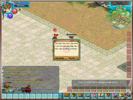 Lưu ý: Chỉ có Trưởng nhóm mới có quyền mời người chơi khác vào nhóm và thiết lập các chế độ cho nhóm như quyền nhặt vật phẩm v.v… Trưởng nhóm sẽ có biểu tượng “Quân cờ tướng” trên đầu..