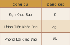 Những điểm cần biết: Nguyên liệu: Nguyên liệu của Điêu khắc cần có: Ngọc Thạch, Bảo Thạch, Mộc Tài. Đa số các nguyên liệu này có được khi phân giải trang bị.