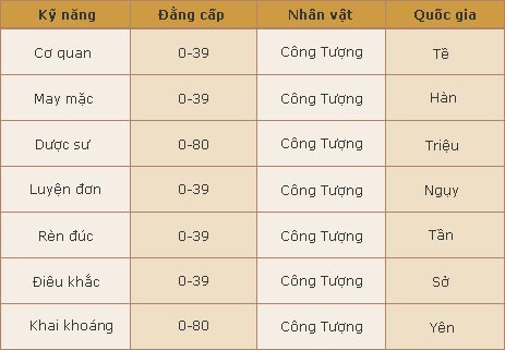 Công thức: NPC Công Tượng chỉ giúp tăng đẳng cấp của nghề đã chọn. Nếu muốn chế tạo ra các vật phẩm phải cần đến các Công thức khác nhau. Bạn phải chu du thiên hạ, truy tìm các loại Công thức để học tập cách thức chế tạo các vật phẩm quý hiếm..