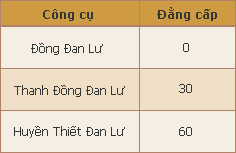 Công thức: Ngoài những Công thức có thể mua từ Công Tượng Luyện đơn. Bạn có thể thực hiện Nhiệm vụ Tầm bảo, diệt Boss để có những Công thức cao cấp hơn. Tuy nhiên, các Công thức cao cấp chỉ có thể dùng được một số lần nhất định trước khi mất tác dụng.